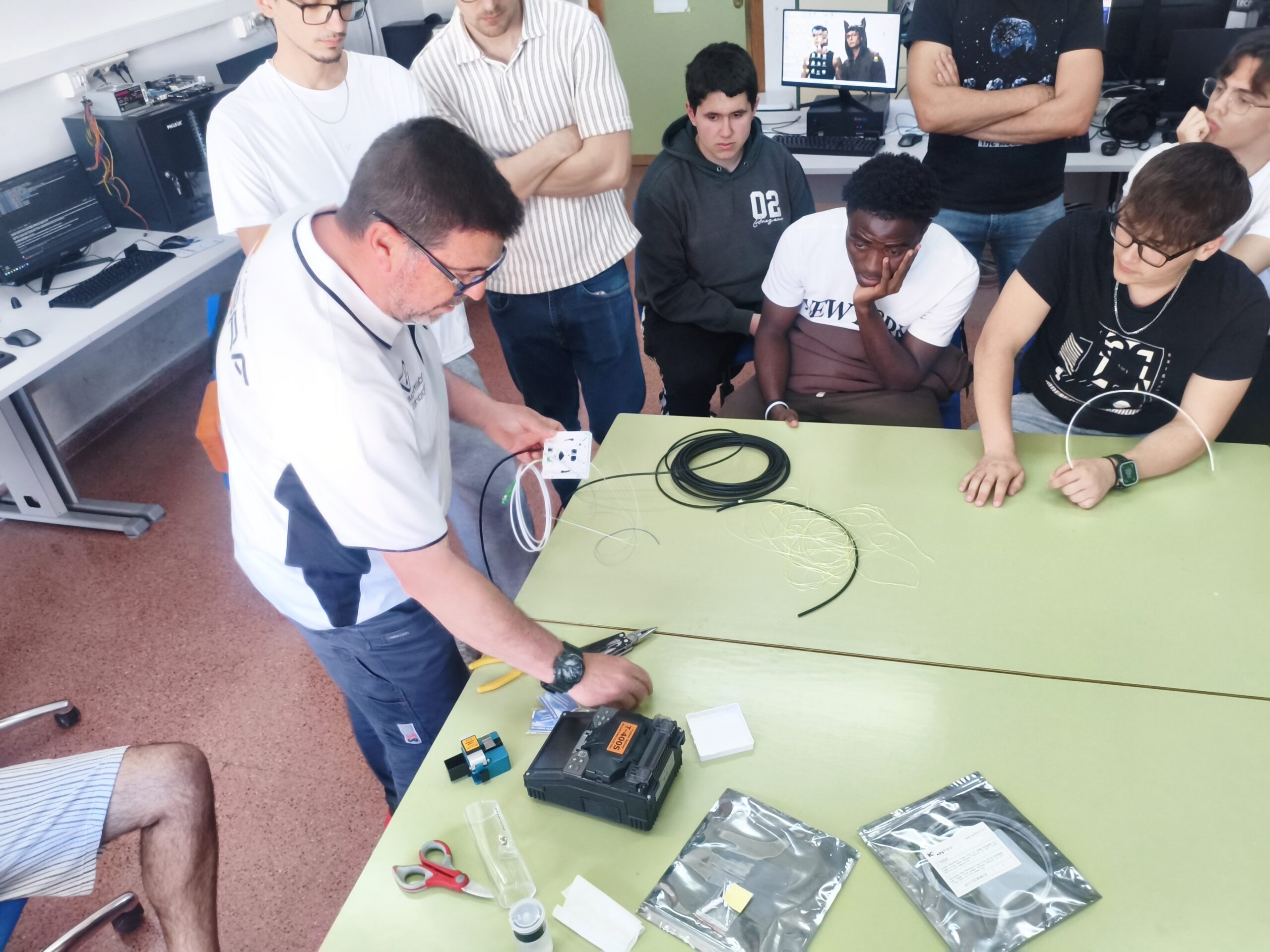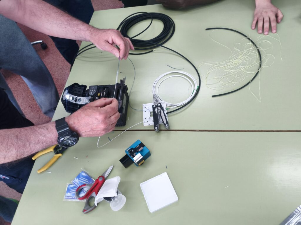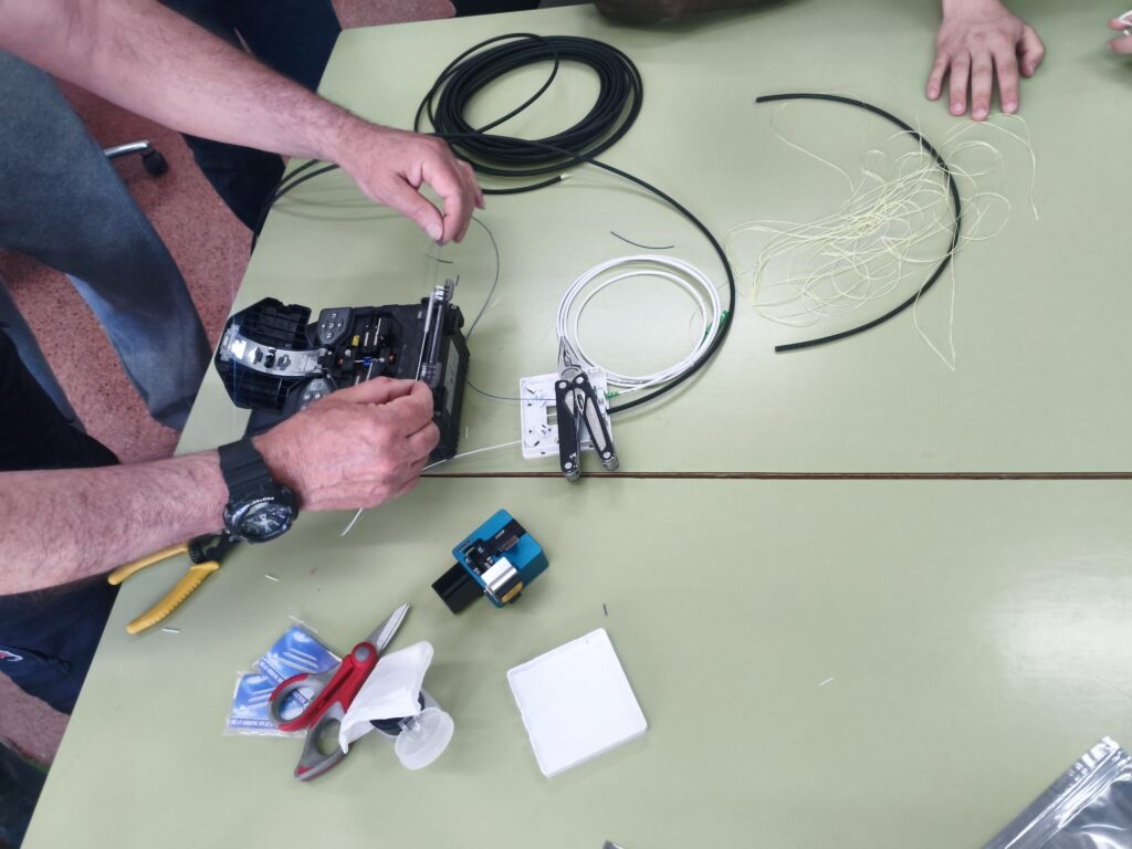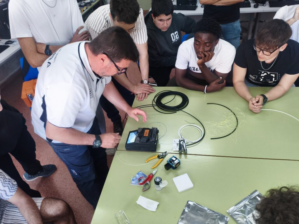 En dicho taller, se llevó a cabo una demostración sobre el proceso de corte y fusión de fibra óptica, un trabajo muy habitual en este tipo de empresas de servicios de Internet. Los alumnos aprendieron sobre las herramientas necesarias, así como el proceso que se llevaría a cabo para la instalación de una línea de fibra óptica en la casa de un cliente.