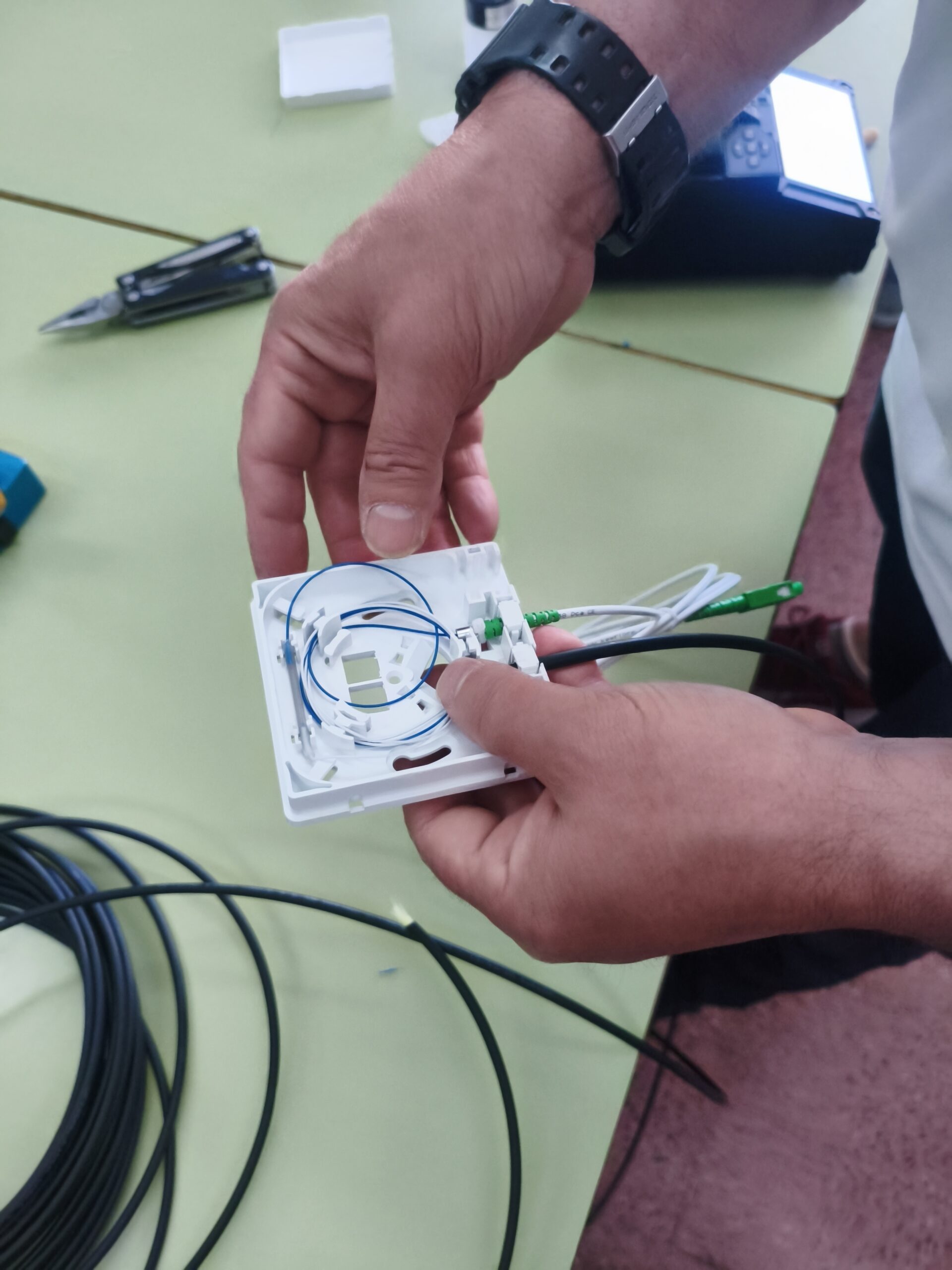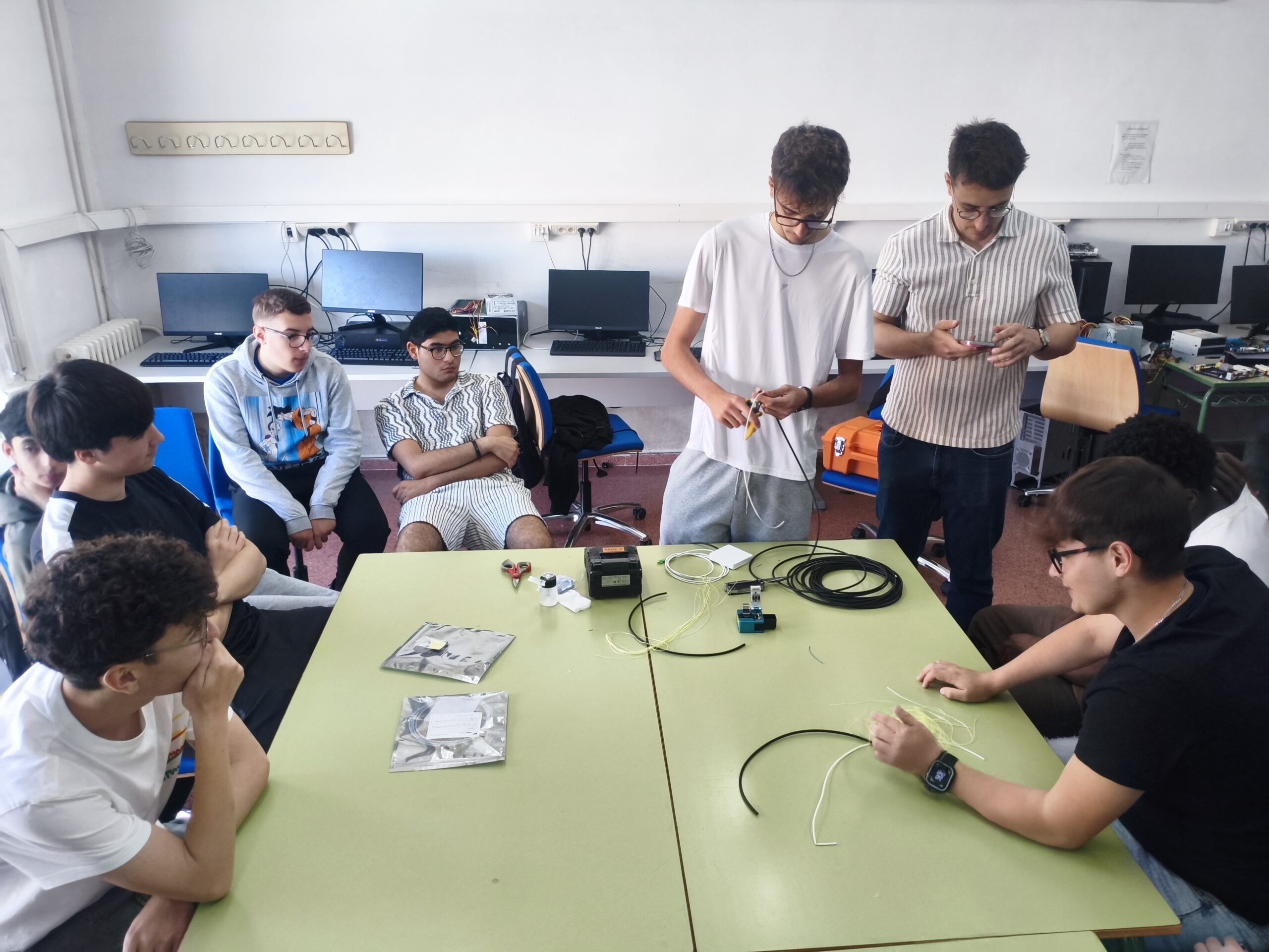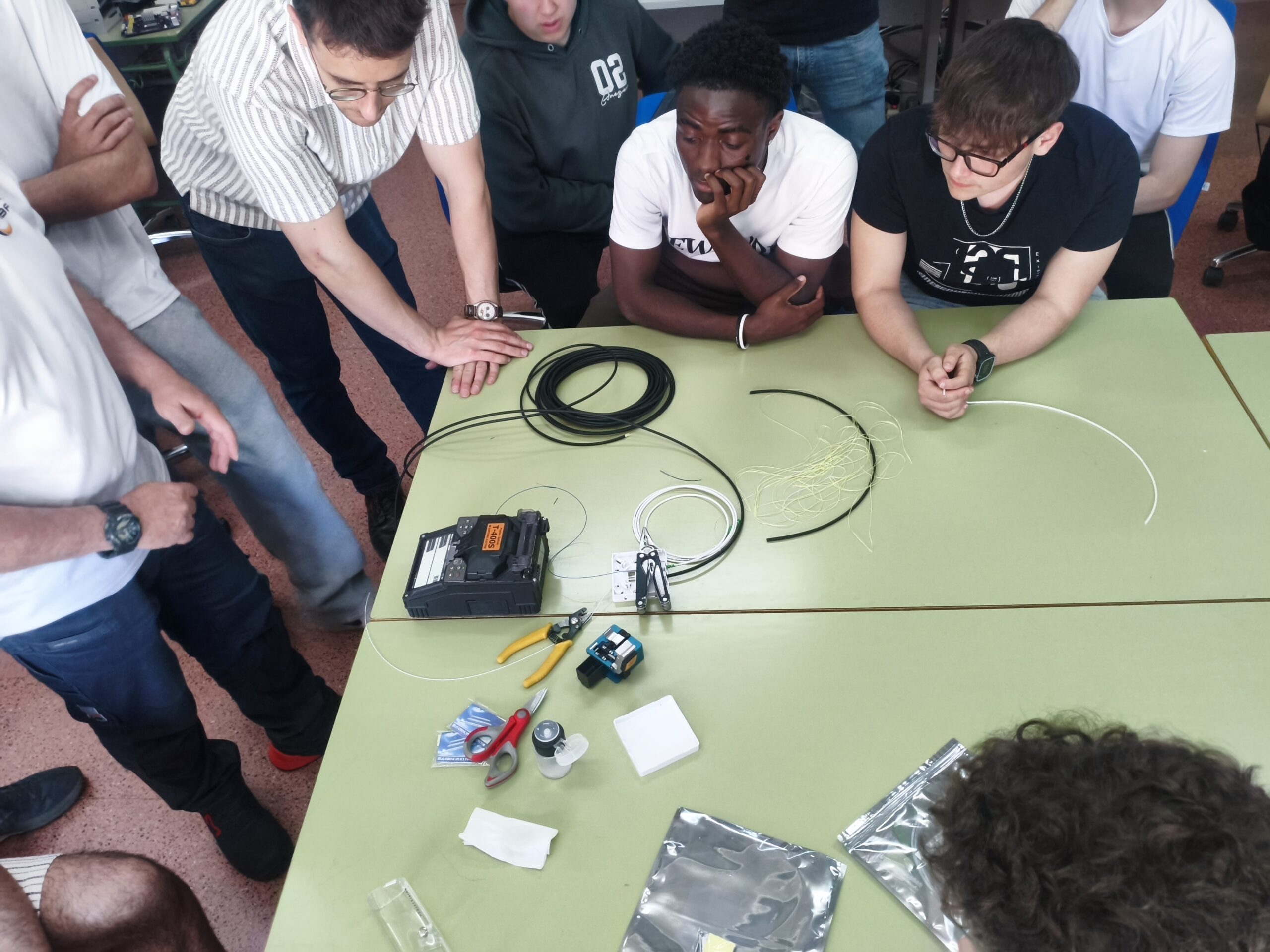 En dicho taller, se llevó a cabo una demostración sobre el proceso de corte y fusión de fibra óptica, un trabajo muy habitual en este tipo de empresas de servicios de Internet. Los alumnos aprendieron sobre las herramientas necesarias, así como el proceso que se llevaría a cabo para la instalación de una línea de fibra óptica en la casa de un cliente.
