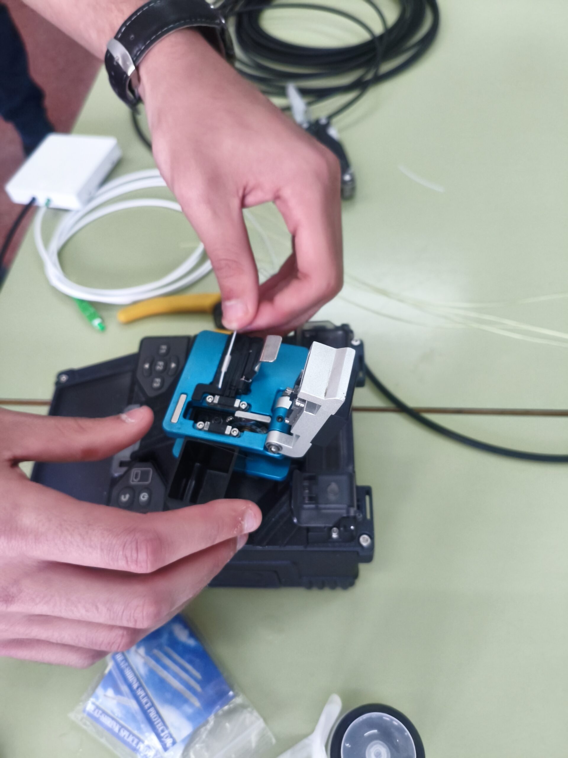 Tras el taller, el alumnado puso en práctica lo aprendido y pudo realizar varias fusiones de fibra óptica. Desde el IES Vega del Argos queremos agradecer a TV Cehegín por prestarse desinteresadamente a ayudarnos en la formación práctica de nuestros alumnos.